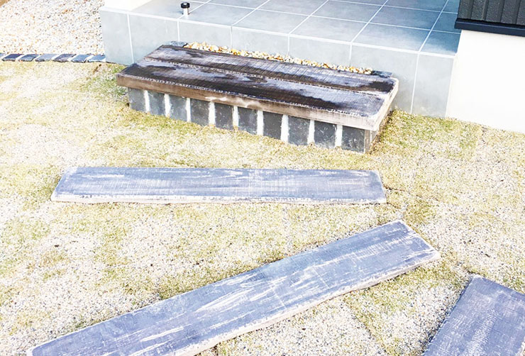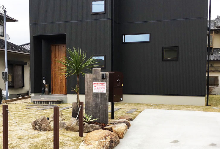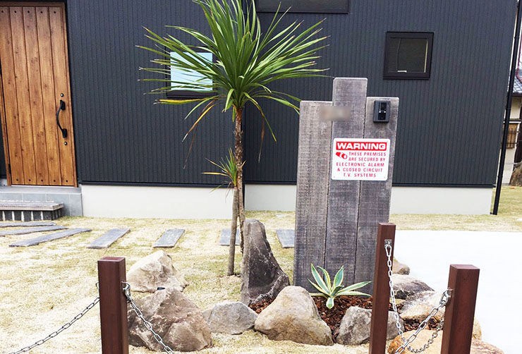 モダンな建物に木のぬくもりを合わせたお洒落な外構